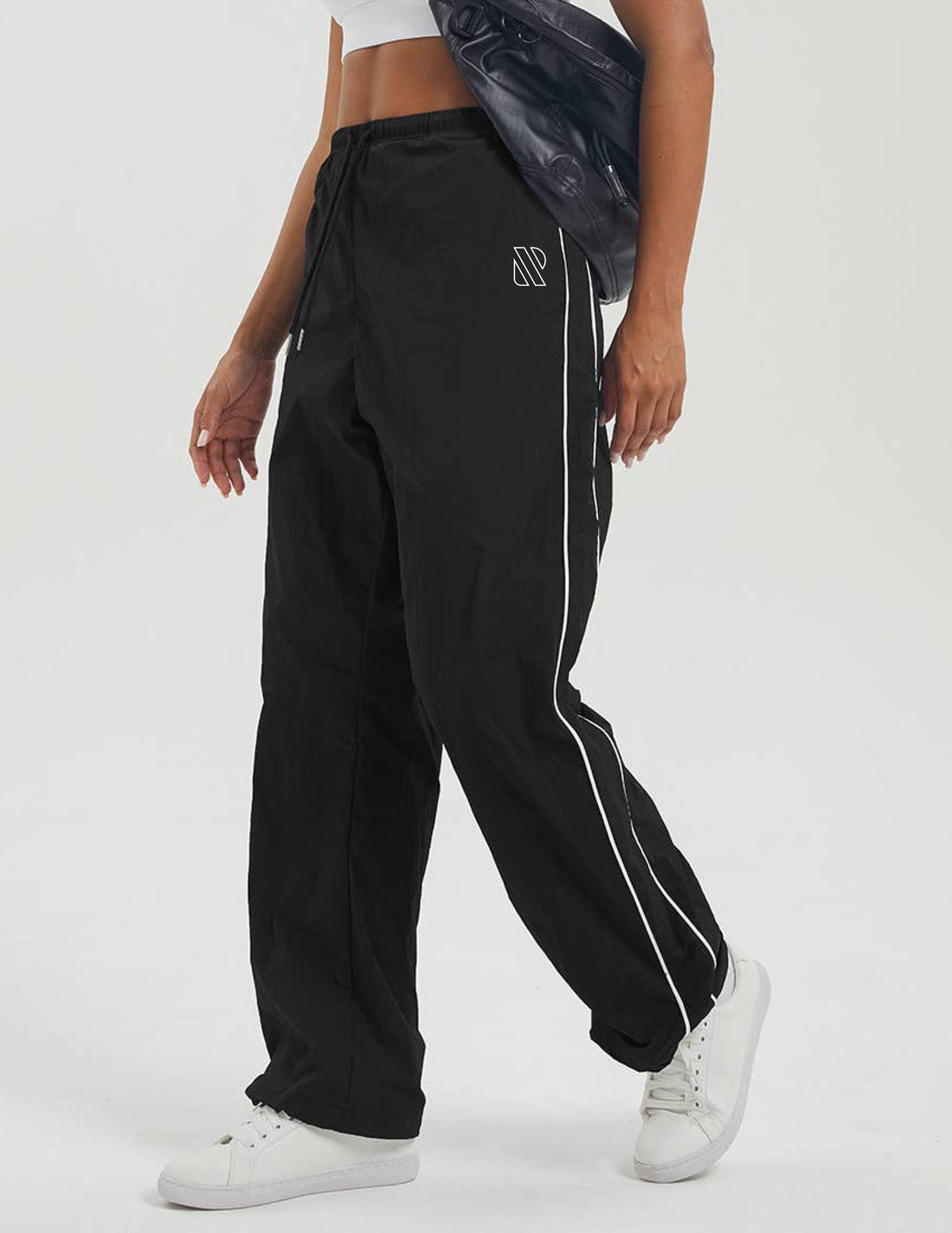Elevate your everyday style with our ROOTS Parachute Pants. Crafted in sleek black with crisp...